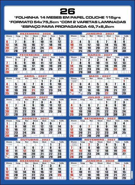 FOLHINHA 14 MESES EM PAPEL COUCHÊ 115grs - *FORMATO 54x75,5cm