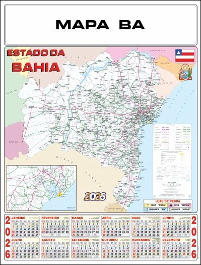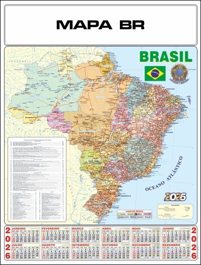 *MAPA COM CALENDÁRIO ANUAL *IMPRESSO EM PAPEL COUCHE 115grs *COM 2 VARETAS LAMINADAS