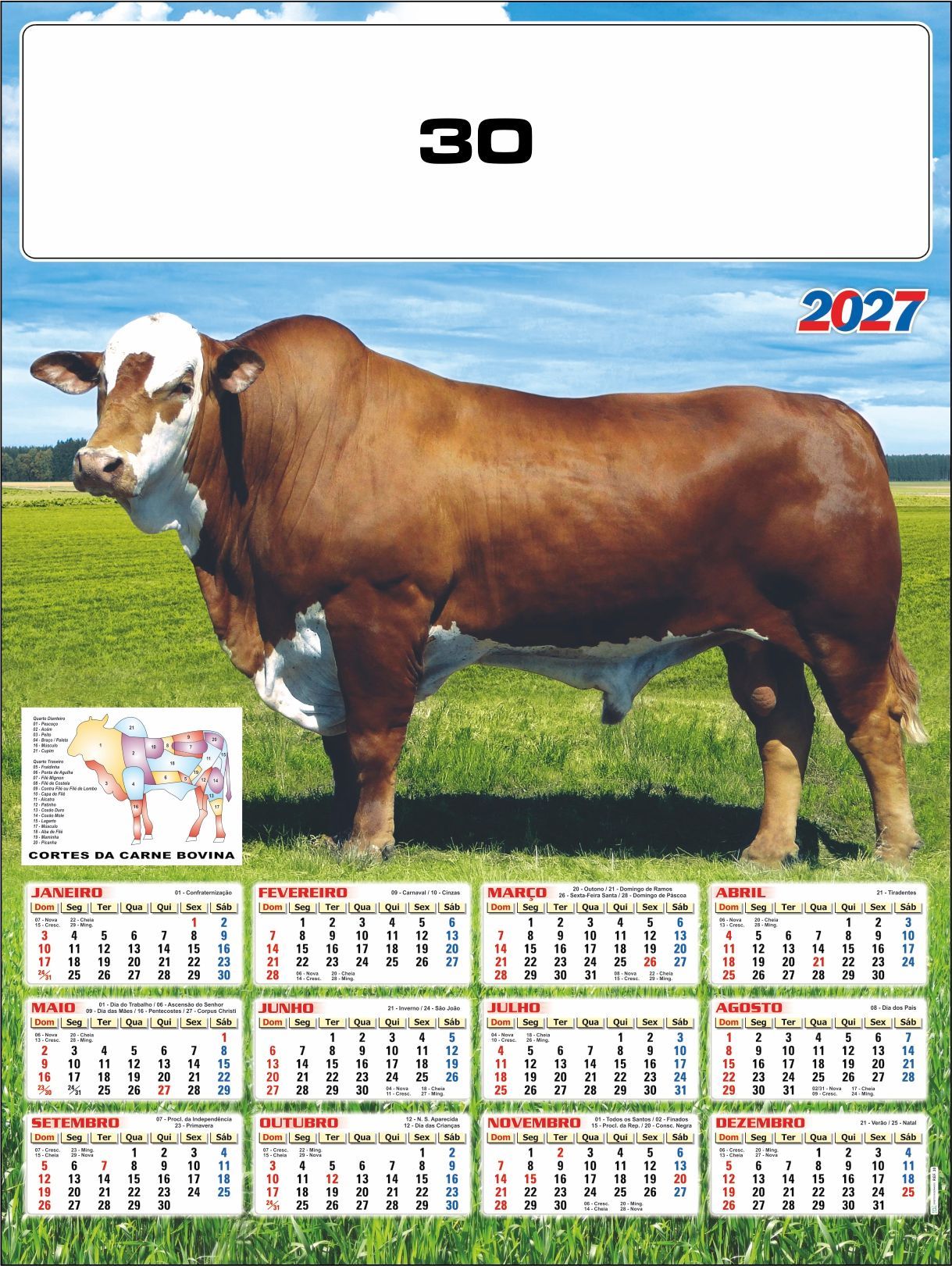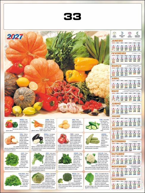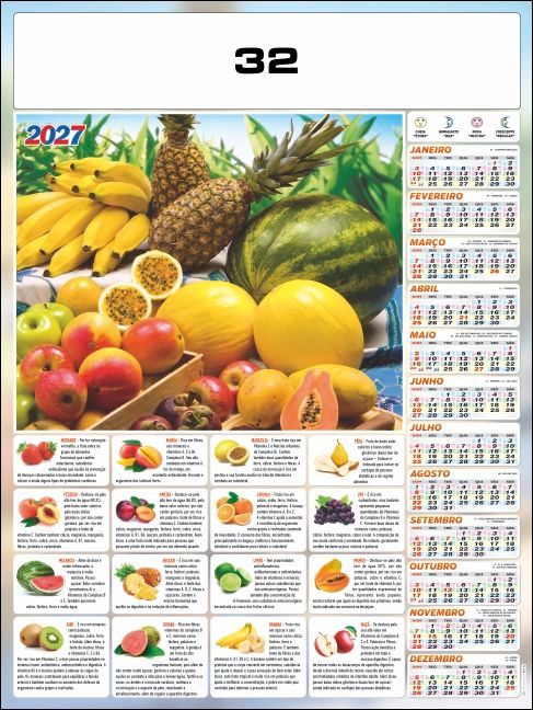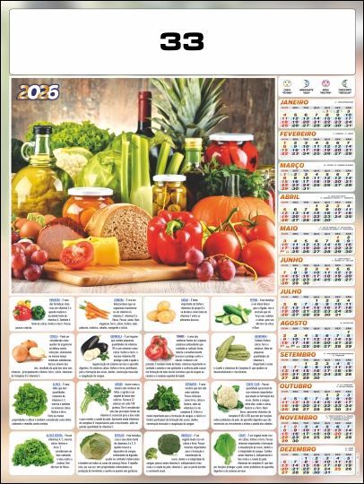 *FOLHINHA ANUAL EM PAPEL COUCHE 115grs *FORMATO 54x74cm *COM 2 VARETAS LAMINADAS